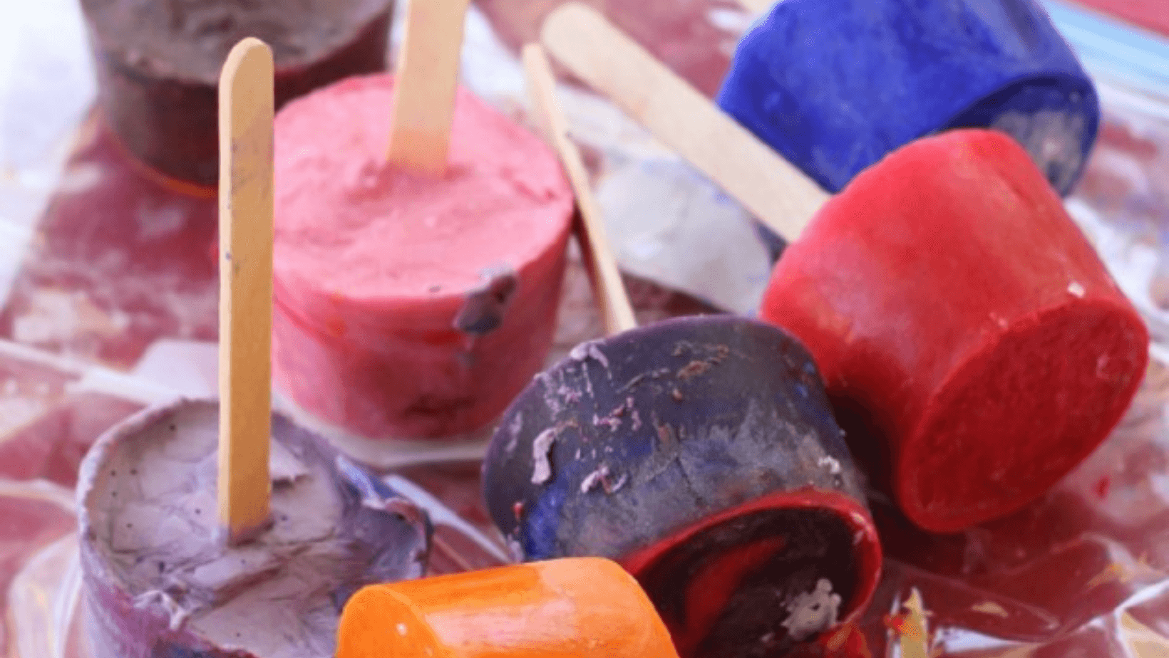 2. Ice Play: Freeze paint on a popsicle stick to work on fine motor strength as well as messy play! Practice drawing simple shapes, letters, or complex shapes/designs based on your childās skill level. Then after head into that sprinkler obstacle course to wash off!